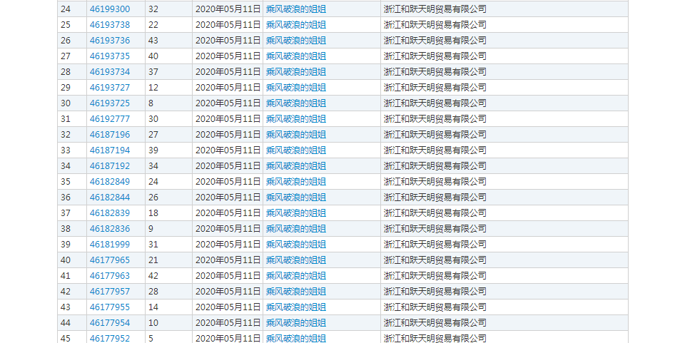 而根据网络数据显示,浙江和跃天明公司在5月11日就开始着手提交了商标注册申请,一口气提交了32件“乘风破浪的姐姐”商标,几近对其进行了全类注册。和跃天明公司除了申请了上面所说的32件“乘风破浪的姐姐”之外,同时还申请了3件“兴风作浪的姐姐”商标,指定的类别与湖南快乐阳光被初步审定的3件商标指定的类别一样,第3类、第41类和第44类。