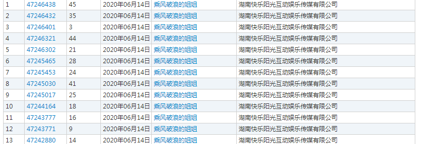 要说是巧合的话,那这未必太过于“巧合”了吧!6月14日,湖南快乐阳光互动娱乐传媒有限公司又提交了13个“乘风破浪的姐姐”的商标。这个时候还来得及吗?只能看后续公告了。